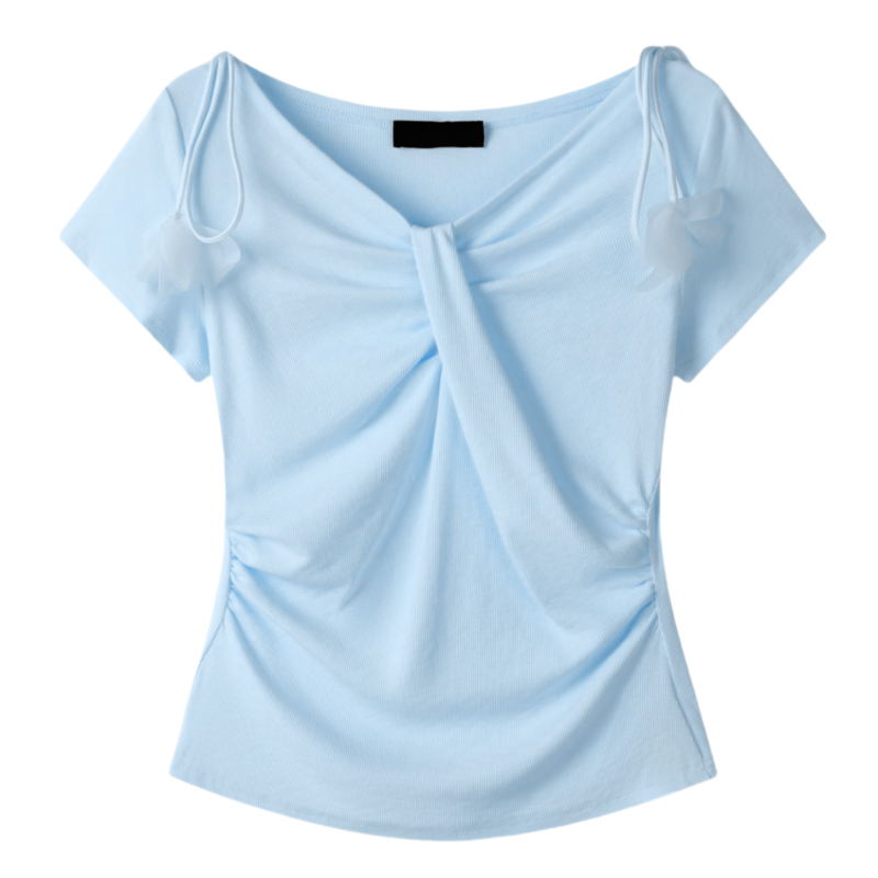 - Constructed from soft, comfortable fabric, this T-shirt features delicate floral patterns and a stylish tie-front detail, capturing a pure and alluring aesthetic.